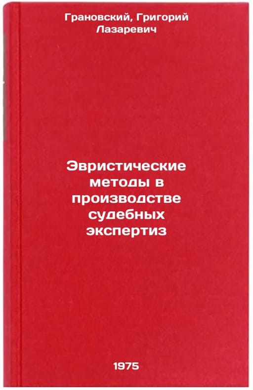 In Russian. Granovsky, Grigory Lazarevich. Heuristic Methods in Forensics Production. Moscow: 1975. Evristicheskie metody v proizvodstve sudebnykh ekspertiz. In Russian /Heuristic Methods in Forensics. All images are for identification of editions only. Several books of the same edition may be available. Please feel free to request photos of available books. SKU6922583