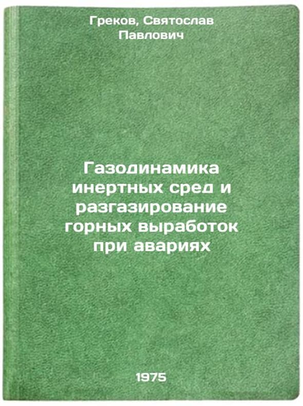 In Russian. Grekov, Svyatoslav Pavlovich. Gas Dynamics of Inert Media and Gasification of Mines in the Event of Accidents. Moscow: Subsoil, 1975. Gazodinamika inertnykh sred i razgazirovanie gornykh vyrabotok pri avariyakh. In Russian /Gas Dynamics of Inert Environments and Gas Discharge of Mines in Accidents. All images are for identification of editions only. Several books of the same edition may be available. Please feel free to request photos of available books. SKU6922780