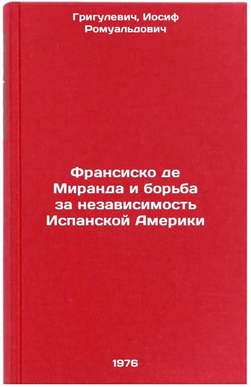 In Russian. Grigulevich, Joseph Romualdovich. Francisco de Miranda and the struggle for the independence of Spanish America. Moscow: Science, 1976. Fransisko de Miranda i bor'ba za nezavisimost' Ispanskoy Ameriki. In Russian /Francisco de Miranda and the struggle for the independence of Spanish America . All images are for identification of editions only. Several books of the same edition may be available. Please feel free to request photos of available books. SKU6923148