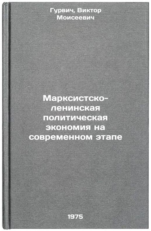 In Russian. Gurvich, Viktor Moiseevich. Marxist-Leninist political economy at the present stage. Leningrad: 1975. Marksistsko-leninskaya politicheskaya ekonomiya na sovremennom etape. In Russian /Marxist-Leninist Political Economy in the Modern Age. All images are for identification of editions only. Several books of the same edition may be available. Please feel free to request photos of available books. SKU6924171