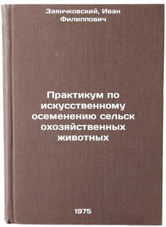 In Russian. Zayanchkovsky, Ivan Filippovich. Workshop on artificial insemination of farm animals. Moscow: Kolos, 1975. Praktikum po iskusstvennomu osemeneniyu sel'skokhozyaystvennykh zhivotnykh. In Russian /Workshop on artificial insemination of farm animals. All images are for identification of editions only. Several books of the same edition may be available. Please feel free to request photos of available books. SKU6925412