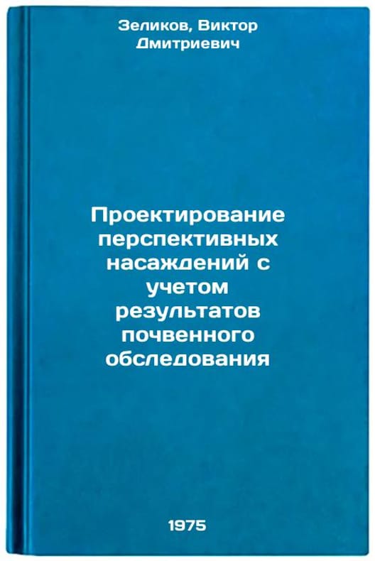 In Russian. Zelikov, Viktor Dmitrievich. Design of prospective plantations taking into account the results of soil survey. Moscow: 1975. Proektirovanie perspektivnykh nasazhdeniy s uchetom rezul'tatov pochvennogo obsledovaniya. In Russian /Designing prospective stands based on the results of soil surveys. All images are for identification of editions only. Several books of the same edition may be available. Please feel free to request photos of available books. SKU6925570