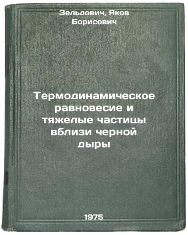 In Russian. Zeldovich, Yakov Borisovich. Thermodynamic equilibrium and heavy particles in the vicinity of a black hole. Moscow: 1975. Termodinamicheskoe ravnovesie i tyazhelye chastitsy vblizi chernoy dyry. In Russian /Thermodynamic equilibrium and heavy particles near a black hole. All images are for identification of editions only. Several books of the same edition may be available. Please feel free to request photos of available books. SKU6925591