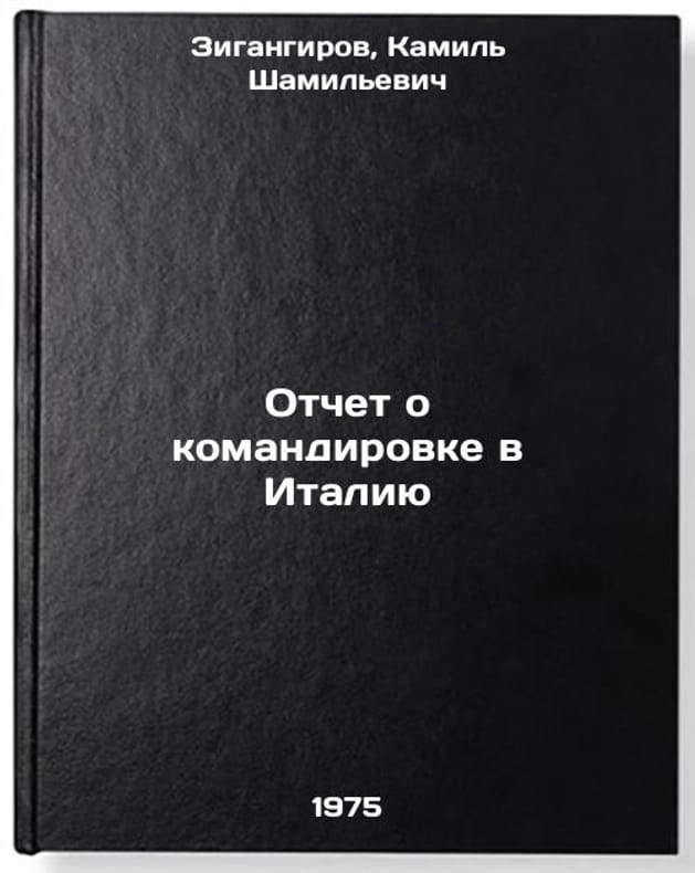 In Russian. Zigangirov, Kamil Shamilevich. Report on mission to Italy. Moscow: 1975. All images are for identification of editions only. Several books of the same edition may be available. Please feel free to request photos of available books. SKU6925679