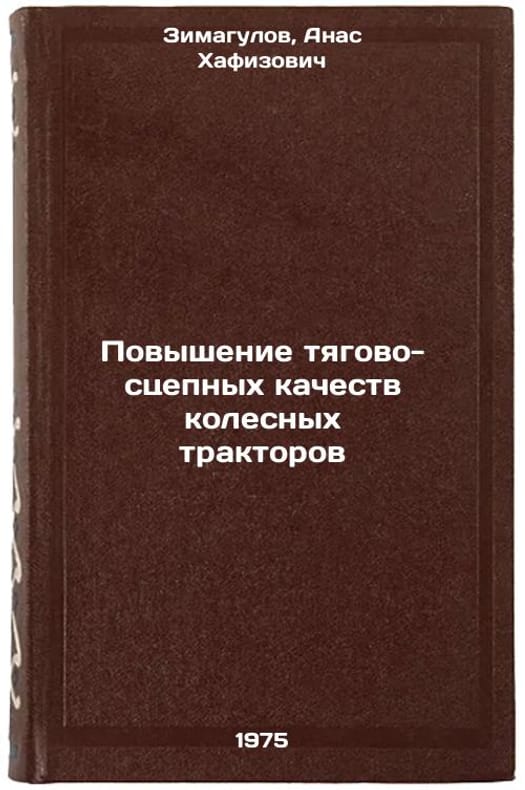 In Russian. Zimagulov, Anas Khafizovich. Improvement of traction and coupling qualities of wheeled tractors. Kazan: Tatar book edition, 1975. Povyshenie tyagovo-stsepnykh kachestv kolesnykh traktorov. In Russian /Improving traction performance of wheeled tractors. All images are for identification of editions only. Several books of the same edition may be available. Please feel free to request photos of available books. SKU6925705
