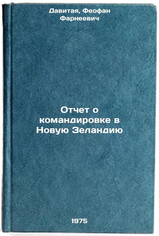 In Russian. Davitaya, Feofan Farneevich. Report on mission to New Zealand. Moscow: 1975. Otchet o komandirovke v Novuyu Zelandiyu. In Russian /Report on mission to New Zealand. All images are for identification of editions only. Several books of the same edition may be available. Please feel free to request photos of available books. SKU6926034