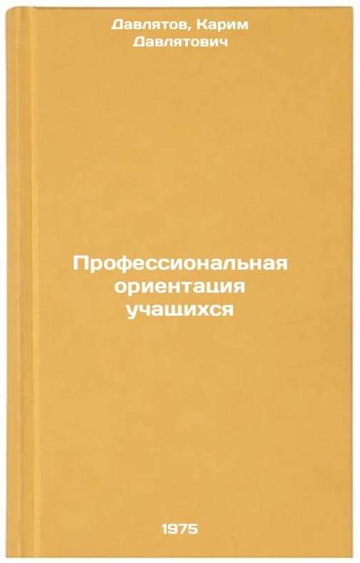 In Russian. Davlyatov, Karim Davlyatovich. Vocational orientation of students. Tashkent: Ukituvchi, 1975. Professional'naya orientatsiya uchashchikhsya. In Russian /Vocational orientation of students. All images are for identification of editions only. Several books of the same edition may be available. Please feel free to request photos of available books. SKU6926046