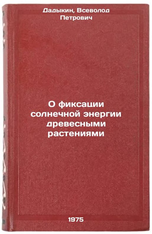 In Russian. Dadykin, Vsevolod Petrovich. On fixing solar energy by tree plants. Moscow: 1975. O fiksatsii solnechnoy energii drevesnymi rasteniyami. In Russian /On the Fixing of Solar Energy by Wood Plants. All images are for identification of editions only. Several books of the same edition may be available. Please feel free to request photos of available books. SKU6926105