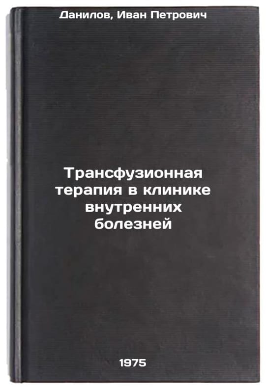 In Russian. Danilov, Ivan Petrovich. Transfusion therapy in the clinic of internal diseases. Minsk: Belarus, 1975. Transfuzionnaya terapiya v klinike vnutrennikh bolezney. In Russian /Transfusion therapy at the Internal Medicine Clinic. All images are for identification of editions only. Several books of the same edition may be available. Please feel free to request photos of available books. SKU6926162