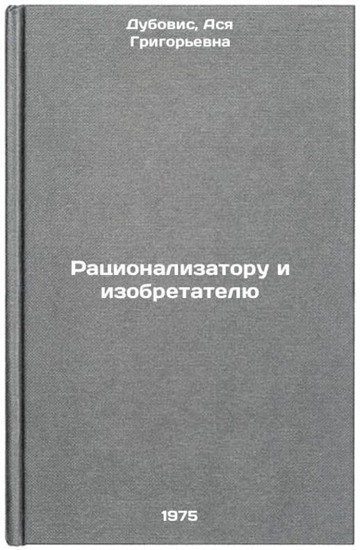 In Russian. Dubovis, Asya Grigorievna. To the Innovator and Inventor. Kharkiv: 1975. All images are for identification of editions only. Several books of the same edition may be available. Please feel free to request photos of available books. SKU6927399