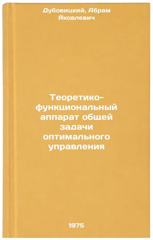 In Russian. Dubovitsky, Abram Yakovlevich. Theoretical-functional apparatus of the general task of optimal control. Teoretiko-funktsional'nyy apparat obshchey zadachi optimal'nogo upravleniya. In Russian /Theoretical-functional apparatus of the general task of optimal control. All images are for identification of editions only. Several books of the same edition may be available. Please feel free to request photos of available books. SKU6927402