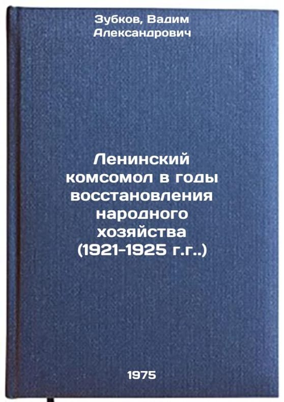 In Russian. Zubkov, Vadim Alexandrovich. Leninsky Komsomol in the years of restoration of the national economy (1921-1925). Leningrad: Leningrad University Publishing House, 1975. Leninskiy komsomol v gody vosstanovleniya narodnogo khozyaystva (1921-1925 gg.). In Russian /Lenin's Komsomol in the Years of Restoration of the National Economy (1921-1925). All images are for identification of editions only. Several books of the same edition may be available. Please feel free to request photos of available books. SKU6927974