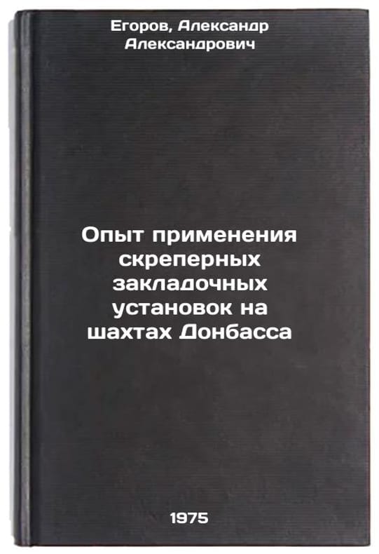 In Russian. Egorov, Alexander Alexandrovich. Experience in the Application of Scraper Boosting Installations in Donbas Mines. Moscow: 1975. Opyt primeneniya skrepernykh zakladochnykh ustanovok na shakhtakh Donbassa. In Russian /Experience with the use of scraper-stowage systems in Donbas mines. All images are for identification of editions only. Several books of the same edition may be available. Please feel free to request photos of available books. SKU6928266