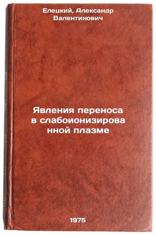 In Russian. Eletsky, Alexander Valentinovich. Transport phenomena in low-ionized plasma. Moscow: Atomizdat, 1975. Yavleniya perenosa v slaboionizirovannoy plazme. In Russian /Transport phenomena in low-ionized plasma. All images are for identification of editions only. Several books of the same edition may be available. Please feel free to request photos of available books. SKU6928403