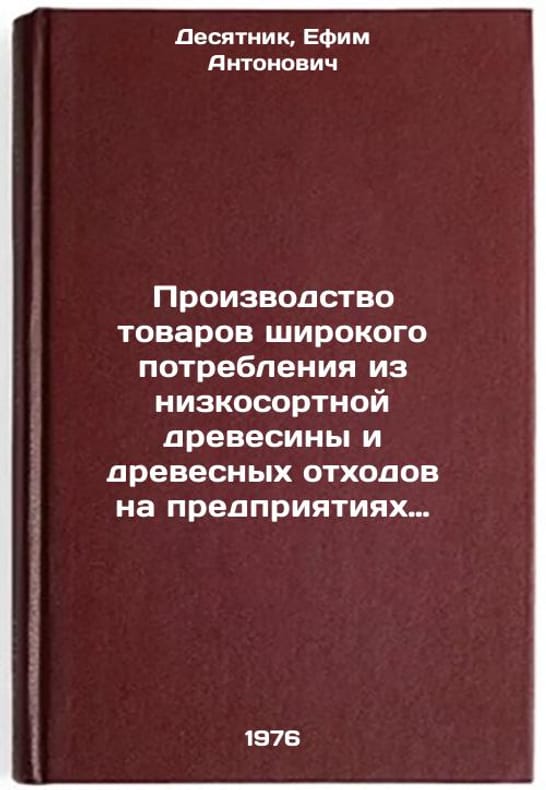 In Russian. Foreman, Efim Antonovich. Production of consumer goods from low-grade wood and wood waste at forestry enterprises of the Ukrainian SSR. Moscow: Forest Industry, 1976. Proizvodstvo tovarov shirokogo potrebleniya iz nizkosortnoy drevesiny i drevesnykh otkhodov na predpriyatiyakh lesnogo khozyaystva Ukrainskoy SSR. In Russian /Production of consumer goods from low-grade wood and wood waste at forestry enterprises of the Ukrainian SSR . All images are for identification of editions only. Several books of the same edition may be available. Please feel free to request photos of available books. SKU6930372