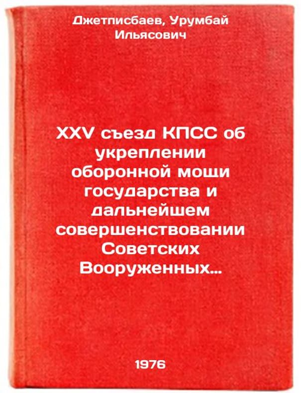 In Russian. Jetpisbaev, Urumbay Ilyasovich. XXV Congress of the CPSU on the Strengthening of the Defense Power of the State and Further Improvement of the Soviet Armed Forces. Almaty: 1976. XXV sezd KPSS ob ukreplenii oboronnoy moshchi gosudarstva i dal'neyshem sovershenstvovanii Sovetskikh Vooruzhennykh Sil. In Russian /XXV Congress of the CPSU on the Strengthening of the State's Defense Power and Further Improvement of the Soviet Armed Forces . All images are for identification of editions only. Several books of the same edition may be available. Please feel free to request photos of available books. SKU6930571
