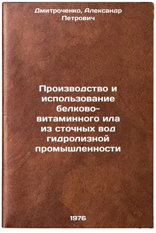 In Russian. Dmitrochenko, Alexander Petrovich. Production and use of protein and vitamin sludge from wastewater from hydrolysis industry. Moscow: Forest Industry, 1976. Proizvodstvo i ispol'zovanie belkovo-vitaminnogo ila iz stochnykh vod gidroliznoy promyshlennosti. In Russian /Production and use of protein and vitamin sludge from wastewater from the hydrolysis industry . All images are for identification of editions only. Several books of the same edition may be available. Please feel free to request photos of available books. SKU6931006