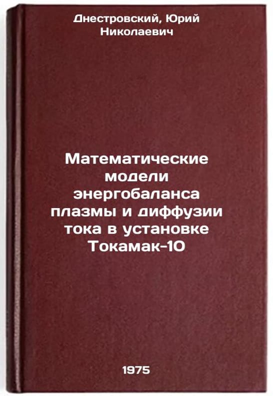 In Russian. Dnestrovsky, Yuri Nikolaevich. Mathematical Models of Plasma Energy Balance and Current Diffusion in Tokamak-10. Moscow: 1975. Matematicheskie modeli energobalansa plazmy i diffuzii toka v ustanovke Tokamak-10. In Russian /Mathematical models of plasma energy balance and current diffusion in Tokamak-10. All images are for identification of editions only. Several books of the same edition may be available. Please feel free to request photos of available books. SKU6931023
