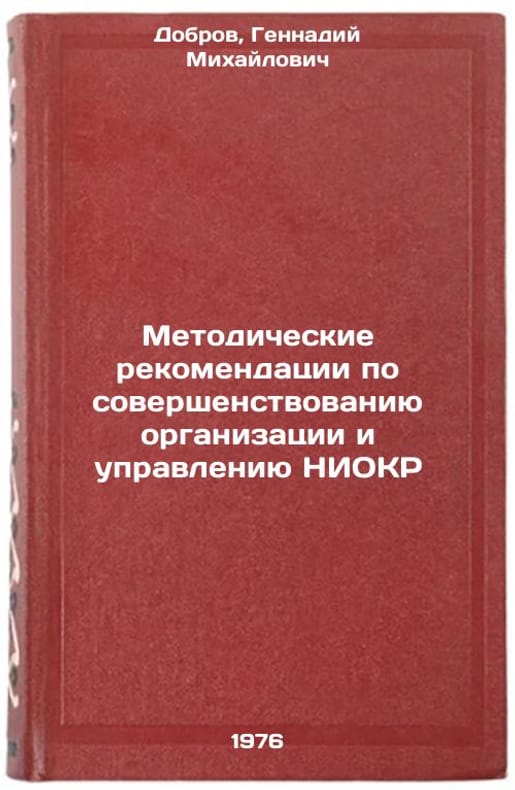 In Russian. Dobrov, Gennady Mikhailovich. Methodological Recommendations for Improving the Organization and Management of R & D. Kyiv: Knowledge of the Ukrainian SSR, 1976. Metodicheskie rekomendatsii po sovershenstvovaniyu organizatsii i upravleniyu NIOKR. In Russian /Methodological Recommendations for Improving R & D Organization and Management . All images are for identification of editions only. Several books of the same edition may be available. Please feel free to request photos of available books. SKU6931075