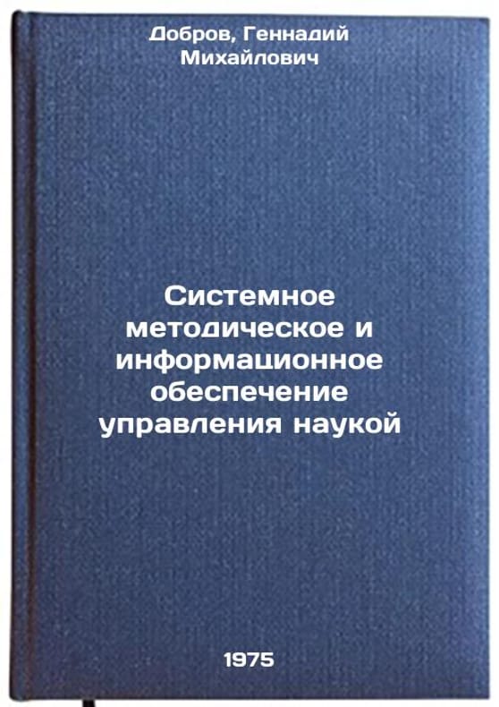 In Russian. Dobrov, Gennady Mikhailovich. System Methodological and Information Support for Science Management. Kyiv: 1975. Sistemnoe metodicheskoe i informatsionnoe obespechenie upravleniya naukoy. In Russian /Systems methodological and informational support for science management. All images are for identification of editions only. Several books of the same edition may be available. Please feel free to request photos of available books. SKU6931077