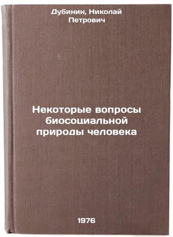 In Russian. Dubinin, Nikolai Petrovich. Some Questions of Human Biosocial Nature. Moscow: Science, 1976. Nekotorye voprosy biosotsial'noy prirody cheloveka. In Russian /Some Questions of Human Biosocial Nature . All images are for identification of editions only. Several books of the same edition may be available. Please feel free to request photos of available books. SKU6931849