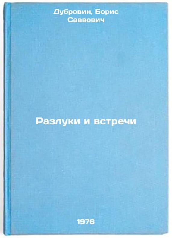 In Russian. Dubrovin, Boris Savvovich. Separations and Meetings. Moscow: Soviet Writer, 1976. All images are for identification of editions only. Several books of the same edition may be available. Please feel free to request photos of available books. SKU6931897