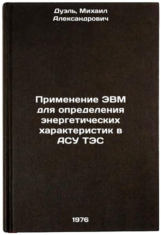 In Russian. Duel, Mikhail Alexandrovich. Computer Application for Determination of Power Characteristics in ACS TPP. Moscow: Energia, 1976. Primenenie EVM dlya opredeleniya energeticheskikh kharakteristik v ASU TES. In Russian /Computer Application for Determining Power Characteristics in TPP ACS . All images are for identification of editions only. Several books of the same edition may be available. Please feel free to request photos of available books. SKU6932131