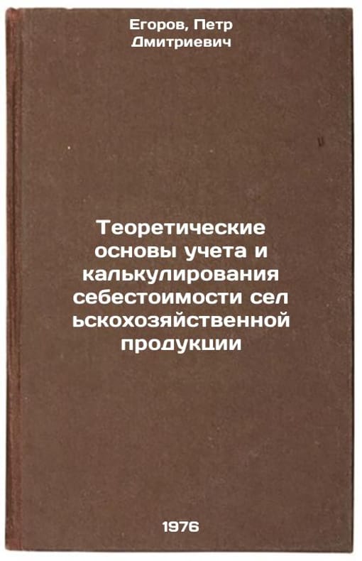 In Russian. Egorov, Petr Dmitrievich. Theoretical Basis of Accounting and Calculation of the Cost of Agricultural Products. Leningrad: 1976. Teoreticheskie osnovy ucheta i kal'kulirovaniya sebestoimosti sel'skokhozyaystvennoy produktsii. In Russian /Theoretical framework for accounting and costing agricultural production . All images are for identification of editions only. Several books of the same edition may be available. Please feel free to request photos of available books. SKU6932691