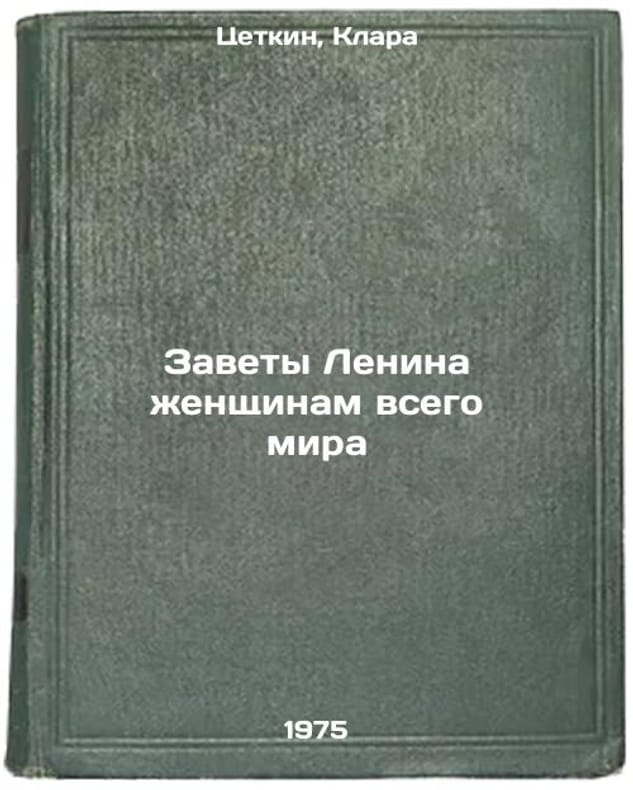 In Russian. Zetkin, Clara. Lenin's Testament to the Women of the World. Moscow: Politizdat, 1975. Zavety Lenina zhenshchinam vsego mira. In Russian /Lenin's Testament to the Women of the World. All images are for identification of editions only. Several books of the same edition may be available. Please feel free to request photos of available books. SKU6934986