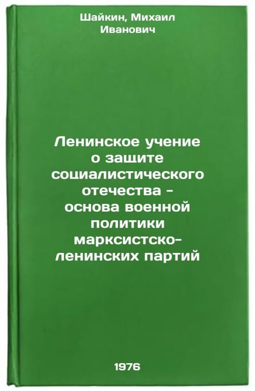 In Russian. Shaikin, Mikhail Ivanovich. Lenin's doctrine on the defense of the socialist fatherland is the basis of the military policy of Marxist-Leninist parties. Riga: 1976. Leninskoe uchenie o zashchite sotsialisticheskogo otechestva - osnova voennoy politiki marksistsko-leninskikh partiy. In Russian /Lenin's doctrine of defending the socialist fatherland is the basis of the military policy of Marxist-Leninist parties . All images are for identification of editions only. Several books of the same edition may be available. Please feel free to request photos of available books. SKU6935271