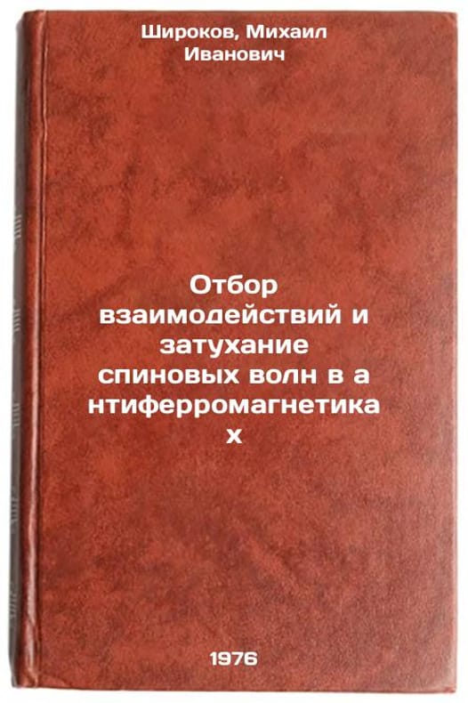 In Russian. Shirokov, Mikhail Ivanovich. Selection of interactions and attenuation of spin waves in antiferromagnetics. Novosibirsk: 1976. Otbor vzaimodeystviy i zatukhanie spinovykh voln v antiferromagnetikakh. In Russian /Selection of interactions and attenuation of spin waves in antiferromagnetics . All images are for identification of editions only. Several books of the same edition may be available. Please feel free to request photos of available books. SKU6936633