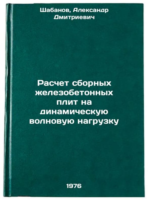 In Russian. Shabanov, Alexander Dmitrievich. Calculation of prefabricated reinforced concrete slabs for dynamic wave load. Kuibyshev: 1976. Raschet sbornykh zhelezobetonnykh plit na dinamicheskuyu volnovuyu nagruzku. In Russian /Calculation of prefabricated reinforced concrete slabs for dynamic wave load . All images are for identification of editions only. Several books of the same edition may be available. Please feel free to request photos of available books. SKU6937442