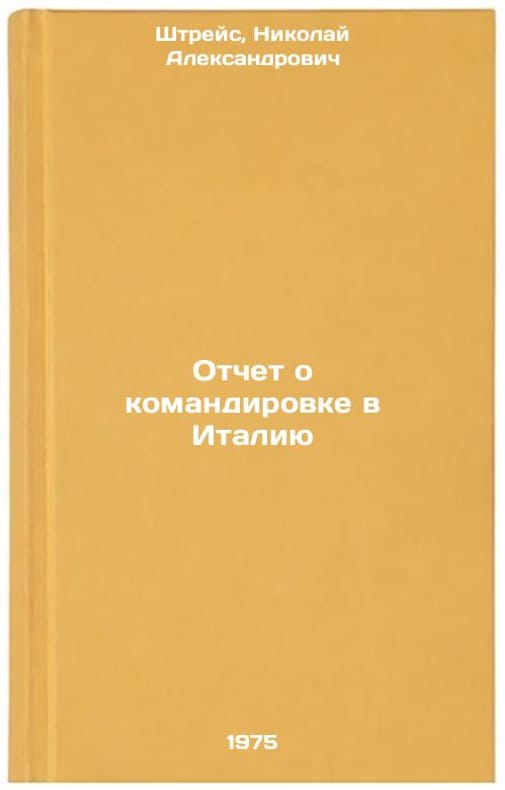 In Russian. Streis, Nikolai Alexandrovich. Report on mission to Italy. Moscow: 1975. All images are for identification of editions only. Several books of the same edition may be available. Please feel free to request photos of available books. SKU6937958