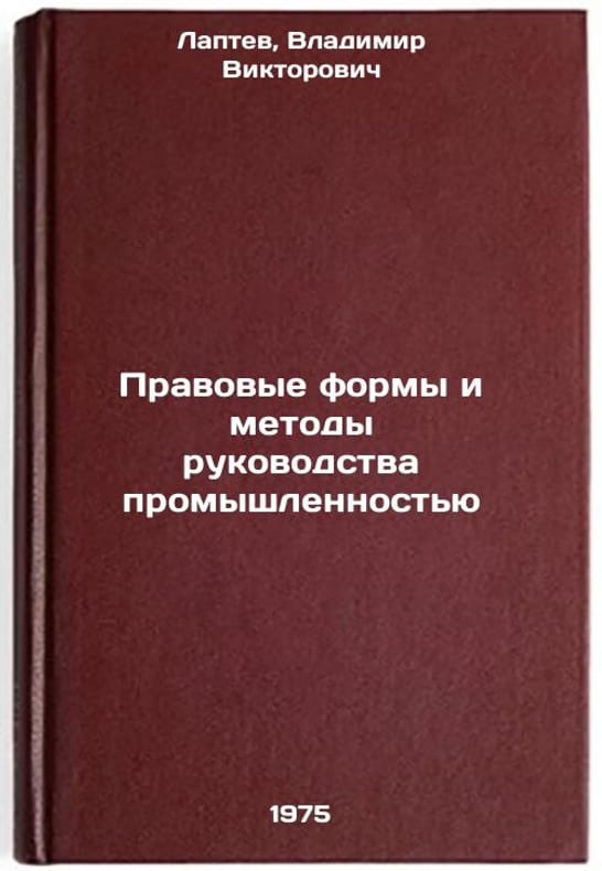 In Russian. Laptev, Vladimir Viktorovich. Legal Forms and Methods of Industrial Governance. Moscow: Legal Lite, 1975. Pravovye formy i metody rukovodstva promyshlennost'yu. In Russian /Legal Forms and Practices of Industrial Governance. All images are for identification of editions only. Several books of the same edition may be available. Please feel free to request photos of available books. SKU6938244