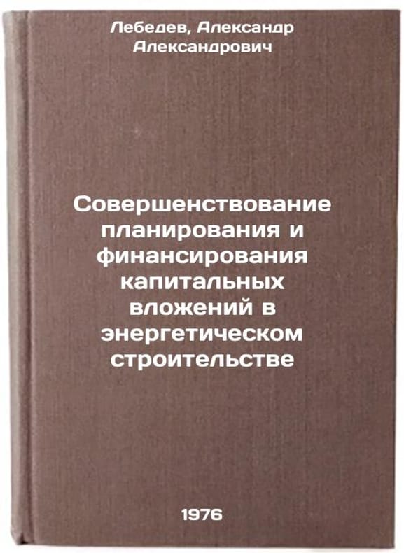 In Russian. Lebedev, Alexander Alexandrovich. Improving the Planning and Financing of Capital Investments in Energy Construction. Moscow: Informenergo, 1976. Sovershenstvovanie planirovaniya i finansirovaniya kapital'nykh vlozheniy v energeticheskom stroitel'stve. In Russian /Improving capital investment planning and financing in energy construction . All images are for identification of editions only. Several books of the same edition may be available. Please feel free to request photos of available books. SKU6938544