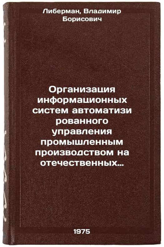 In Russian. Liberman, Vladimir Borisovich. Organization of Information Systems for Automated Control of Industrial Production at Domestic Enterprises. Moscow: 1975. Organizatsiya informatsionnykh sistem avtomatizirovannogo upravleniya promyshlennym proizvodstvom na otechestvennykh predpriyatiyakh. In Russian /Organization of information systems for automated management of industrial production in domestic enterprises. All images are for identification of editions only. Several books of the same edition may be available. Please feel free to request photos of available books. SKU6939581