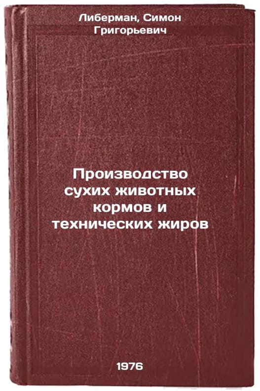In Russian. Lieberman, Simon Grigorievich. Production of dry animal feed and industrial fats. Moscow: Food Industry, 1976. Proizvodstvo sukhikh zhivotnykh kormov i tekhnicheskikh zhirov. In Russian /Production of dry animal feed and industrial fats . All images are for identification of editions only. Several books of the same edition may be available. Please feel free to request photos of available books. SKU6939592