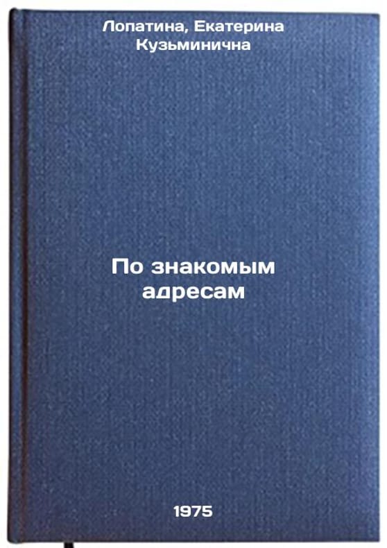 In Russian. Lopatina, Ekaterina Kuzminichna. By familiar addresses. Moscow: Soviet Russia, 1975. All images are for identification of editions only. Several books of the same edition may be available. Please feel free to request photos of available books. SKU6940598
