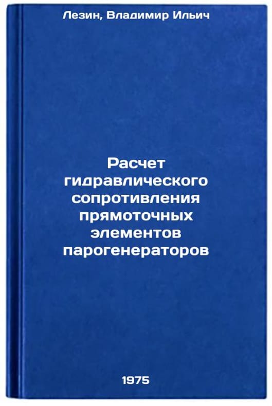 In Russian. Lezin, Vladimir Ilyich. Calculation of hydraulic resistance of straight-line steam generator elements. Moscow: 1975. Raschet gidravlicheskogo soprotivleniya pryamotochnykh elementov parogeneratorov. In Russian /Calculation of the hydraulic resistance of rectangular components of steam generators. All images are for identification of editions only. Several books of the same edition may be available. Please feel free to request photos of available books. SKU6940710