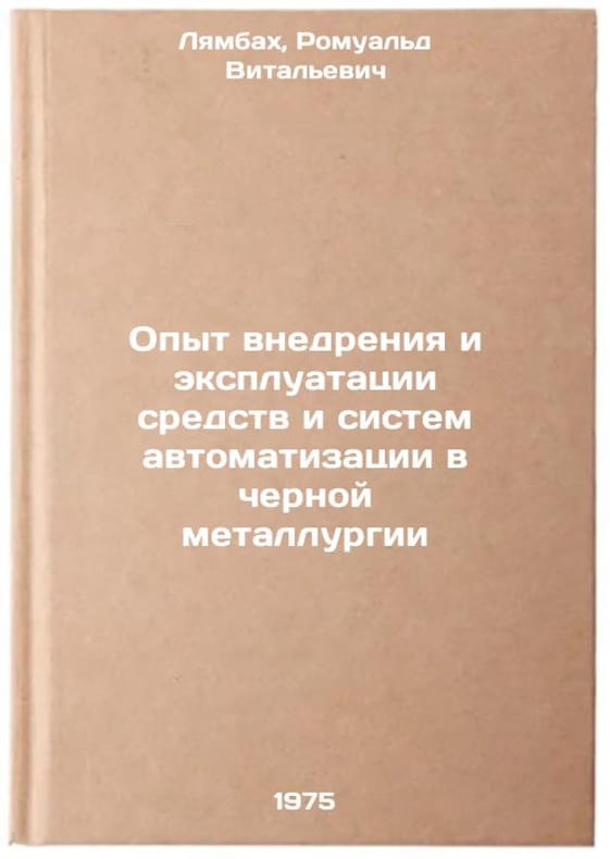 In Russian. Lyambach, Romuald Vitalievich. Experience of introduction and operation of automation tools and systems in the iron and steel industry. Moscow: 1975. Opyt vnedreniya i ekspluatatsii sredstv i sistem avtomatizatsii v chernoy metallurgii. In Russian /Experience with the introduction and operation of automation tools and systems in the steel industry. All images are for identification of editions only. Several books of the same edition may be available. Please feel free to request photos of available books. SKU6941602