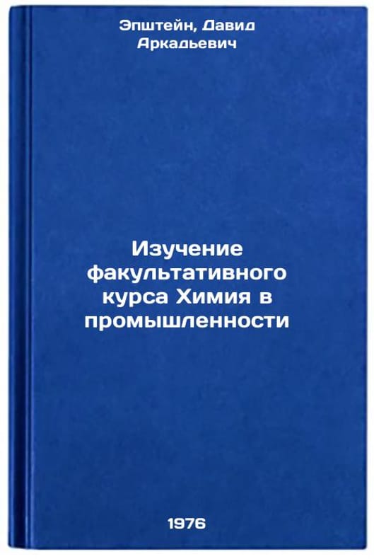 In Russian. Epshtein, David Arkadievich. Study of the optional course Chemistry in Industry. Moscow: Enlightenment, 1976. Izuchenie fakul'tativnogo kursa Khimiya v promyshlennosti. In Russian /Study of the optional course Chemistry in Industry . All images are for identification of editions only. Several books of the same edition may be available. Please feel free to request photos of available books. SKU6941993