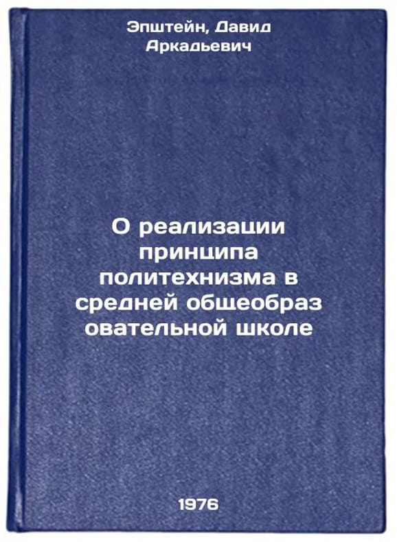 In Russian. Epshtein, David Arkadievich. On the Implementation of the Principle of Polytechnic in Secondary General Education School. Moscow: 1976. O realizatsii printsipa politekhnizma v sredney obshcheobrazovatel'noy shkole. In Russian /Implementing the Principle of Polytechnic in Secondary General Education . All images are for identification of editions only. Several books of the same edition may be available. Please feel free to request photos of available books. SKU6941994