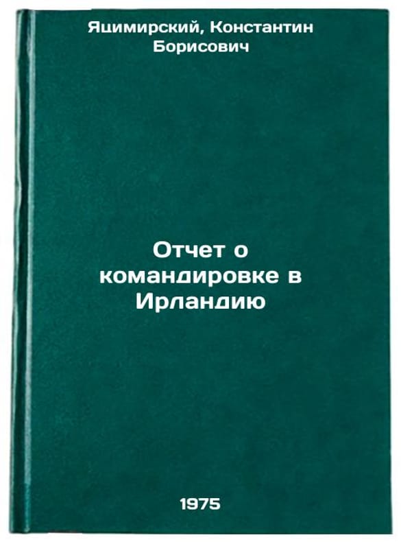 In Russian. Yatsimirsky, Konstantin Borisovich. Report on mission to Ireland. Moscow: 1975. All images are for identification of editions only. Several books of the same edition may be available. Please feel free to request photos of available books. SKU6943032