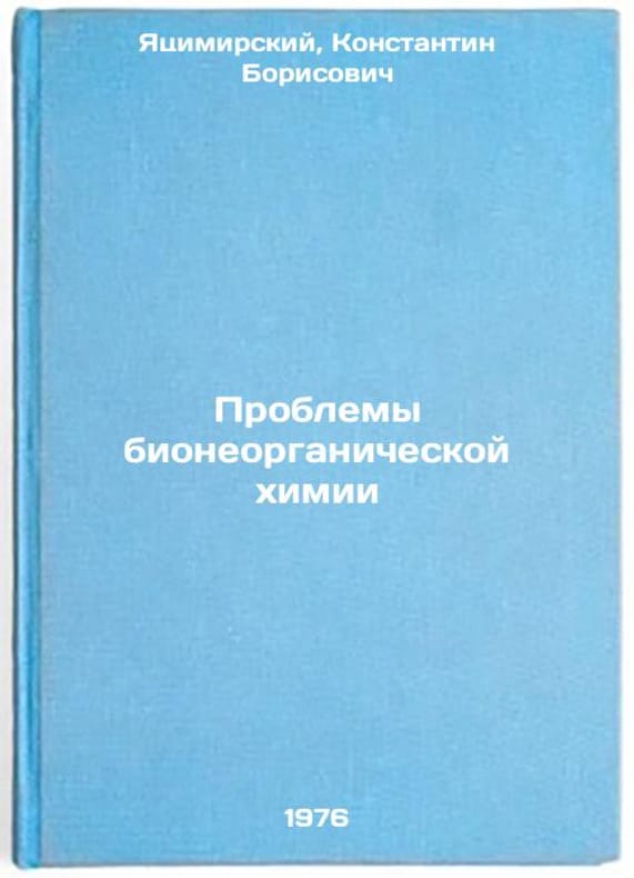 In Russian. Yatsimirsky, Konstantin Borisovich. Problems of Bioorganic Chemistry. Moscow: Znanie, 1976. Problemy bioneorganicheskoy khimii. In Russian /The Challenges of Bioorganic Chemistry . All images are for identification of editions only. Several books of the same edition may be available. Please feel free to request photos of available books. SKU6943033
