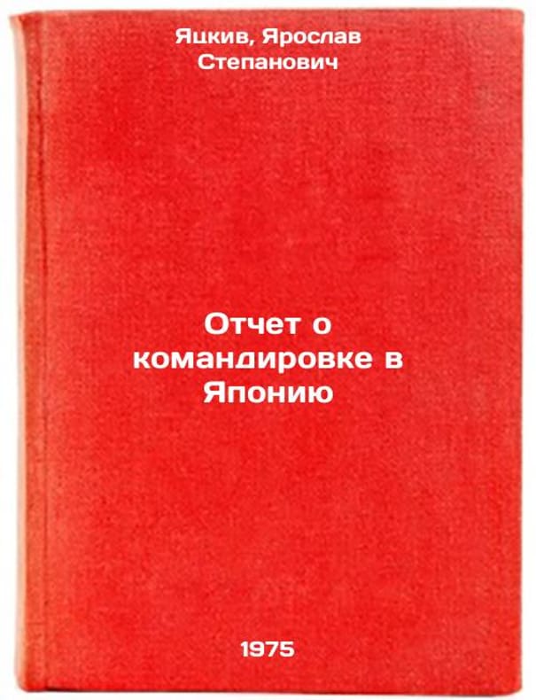 In Russian. Yatskiv, Yaroslav Stepanovich. Report on mission to Japan. Moscow: 1975. All images are for identification of editions only. Several books of the same edition may be available. Please feel free to request photos of available books. SKU6943039
