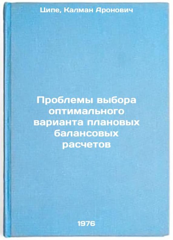 In Russian. Tsipe, Kalman Aronovich. Problems of choosing the optimal variant of planned balance sheet calculations. Riga: IIPIKSH, 1976. Problemy vybora optimal'nogo varianta planovykh balansovykh raschetov. In Russian /Problems in choosing the optimal option for planned balance sheets . All images are for identification of editions only. Several books of the same edition may be available. Please feel free to request photos of available books. SKU6943186