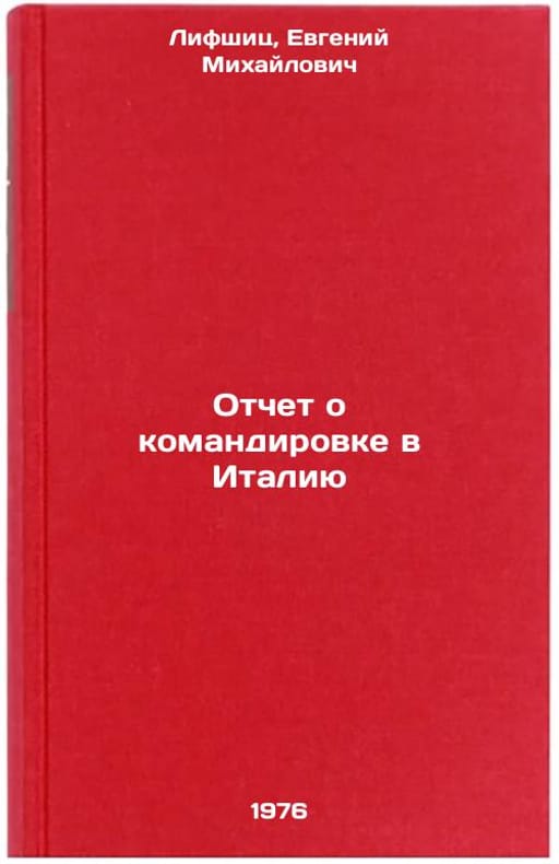 In Russian. Lifshits, Evgeniy Mikhailovich. Report on mission to Italy. Moscow: 1976. All images are for identification of editions only. Several books of the same edition may be available. Please feel free to request photos of available books. SKU6943775