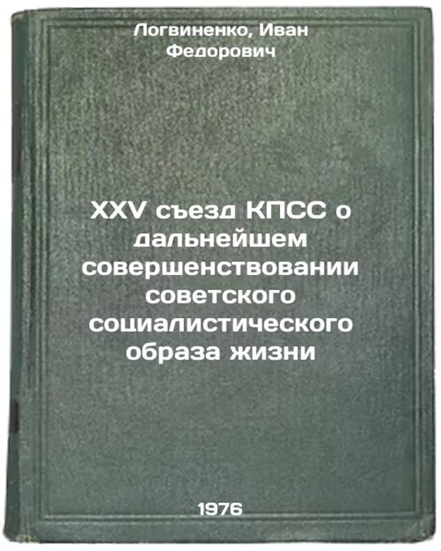 In Russian. Logvinenko, Ivan Fedorovich. XXV Congress of the CPSU on the Further Improvement of the Soviet Socialist Way of Life. Kyiv: 1976. XXV sezd KPSS o dal'neyshem sovershenstvovanii sovetskogo sotsialisticheskogo obraza zhizni. In Russian /XXV Congress of the CPSU on the Further Improvement of the Soviet Socialist Way of Life . All images are for identification of editions only. Several books of the same edition may be available. Please feel free to request photos of available books. SKU6943785