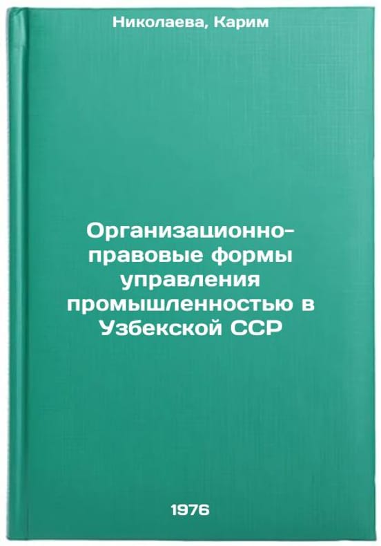In Russian. Nikolaeva, Karim. Organizational and Legal Forms of Industrial Governance in the Uzbek SSR. Tashkent: Fan, 1976. Organizatsionno-pravovye formy upravleniya promyshlennost'yu v Uzbekskoy SSR. In Russian /Organizational and Legal Forms of Industrial Governance in the Uzbek SSR . All images are for identification of editions only. Several books of the same edition may be available. Please feel free to request photos of available books. SKU6944554