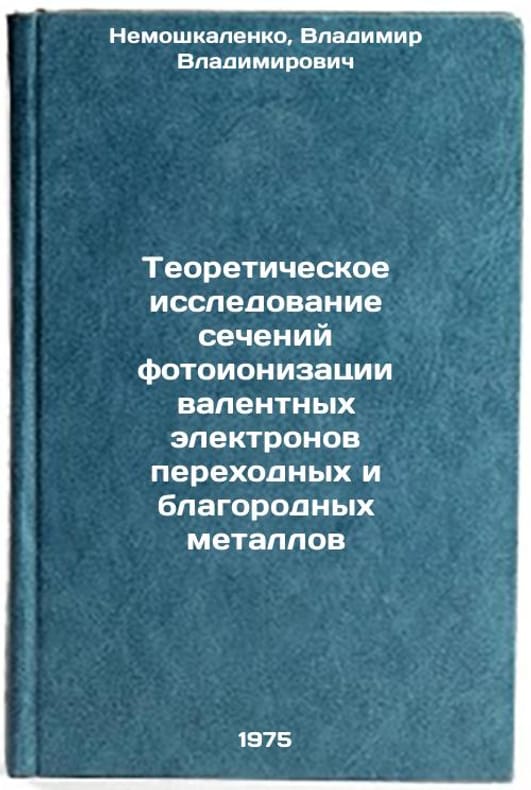 In Russian. Nemoshkalenko, Vladimir Vladimirovich. Theoretical Study of Photoionization Sections of valence electrons of Transient and Noble Metals. Kyiv, 1975. Teoreticheskoe issledovanie secheniy fotoionizatsii valentnykh elektronov perekhodnykh i blagorodnykh metallov. In Russian /Theoretical investigation of photoionization sections of valence electrons of transient and noble metals. All images are for identification of editions only. Several books of the same edition may be available. Please feel free to request photos of available books. SKU6946065